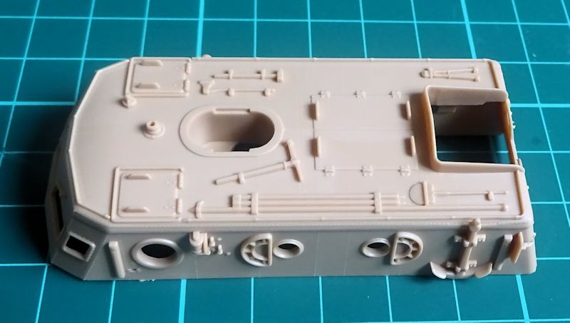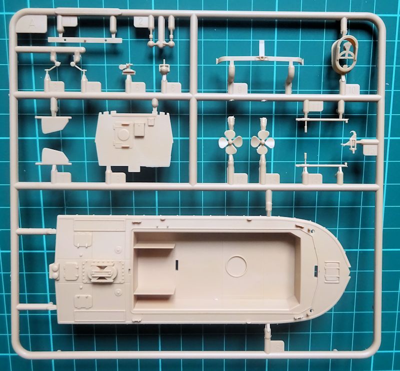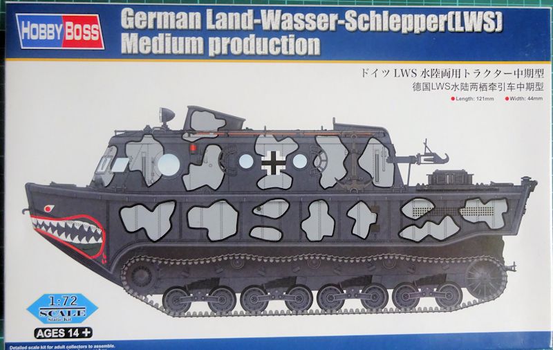 Bausatz: Hobby Boss bringt nach der frühen Ausführung jetzt einen Land-Wasser-Schlepper der mittleren Produktion heraus. In dem schön gestalteten Karton befinden sich zwei Gießäste, die untere Rumpfhälfte, die Kabine, beide Laufwerke ein kleiner Gießast mit Klarsichteilen, der Bauplan und Abziehbilder. Der Bauplan führt in 10 übersichtlichen Schritten zum fertigen Modell.