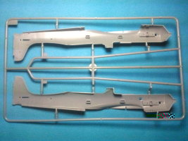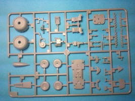 Bausatz: In der auffallend kleinen zweiteiligen Schachtel mit computeranimiertem Deckelbild drängeln sich gut verpackt 55 Teile in Hellgrau sowie drei klare Teile für die Haube und das Revi. Jeder der vier großen und vier kleinen Gießäste ist einzeln eingetütet, die Glasteile haben auch noch ein Schaumstoffpolster spendiert bekommen. Die Teile sind von der selben hohen Qualität, die man inzwischen von Neuerscheinungen dieser Firma zu erwarten gewohnt ist. Sie haben eine leicht raue Oberfläche und weisen keine Sinkstellen, Auswurfmarkierungen an ungünstigen Stellen oder Flash auf. Die Glasteile sind kristallklar und ohne Schlieren.