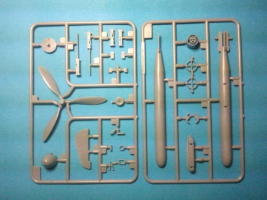 An einem extra Gießast finden sich die versionsspezifischen Teile zum Bau eines Lufttorpedos samt zugehörigem LT-Träger Schloß 504 zur Befestigung unter dem Rumpf. Ein eignener Rahmen enthält zwei vordere Rumpfabdeckungen, die sich nur in der Auswölbung über dem Backbord-Laderverkleidung unterscheiden. Ist einer davon für die Version C-11 oder hat man hier auf die Kritik an der doch sehr starken und eckigen Auswölbung der ersten Bausatzausgaben reagiert??