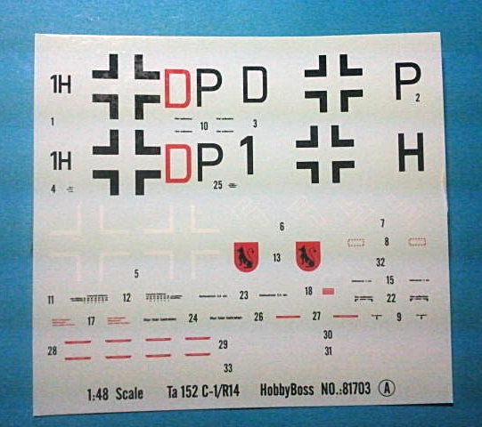 Der Decalbogen bietet nur eine vermutlich fiktive Version in RLM 76/82/62(?). Die Farbhinweise beziehen sich auf das Angebot von Gunze-Sangyo Mr. Hobby Color, Model Master, Tamiya und Humbrol.