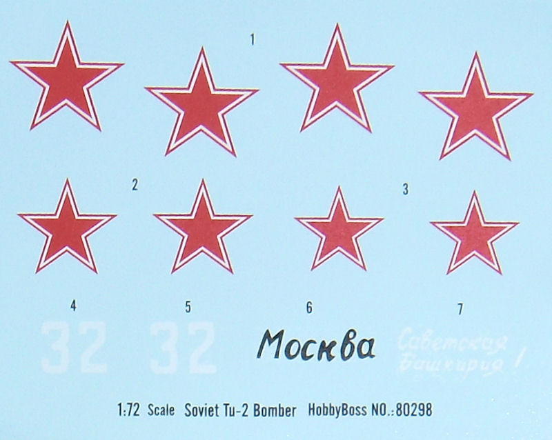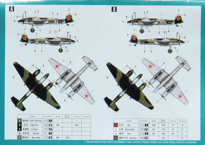 Die Bemalungshinweise sind recht winzig aber mehrfarbig. Hinweise zu den zwei sowjetischen Vorbildern gibt es keine. Es wird auf die Farbsysteme von Mr.Hobby, Vallejo, ModelMaster, Tamiya und Humbrol verwiesen.