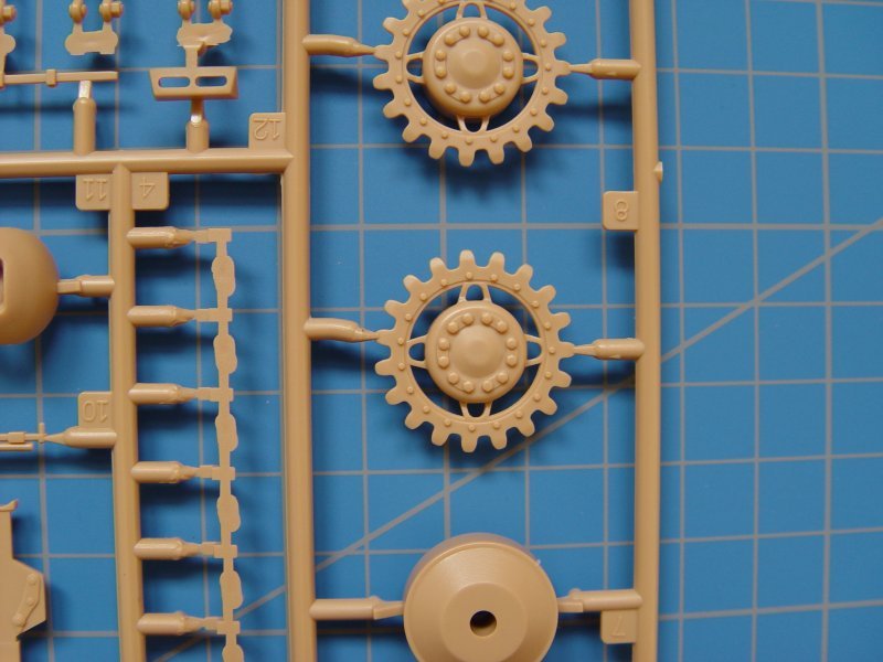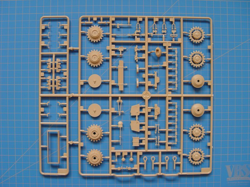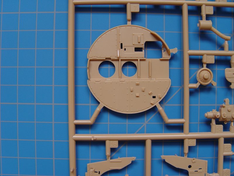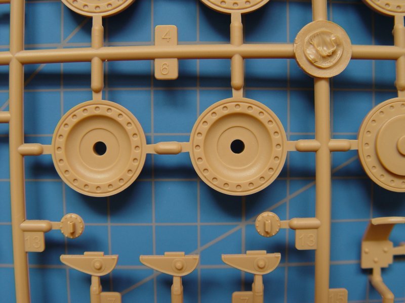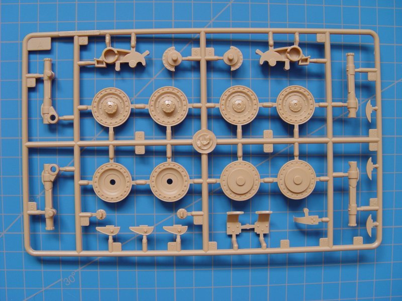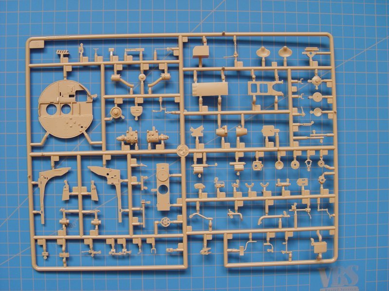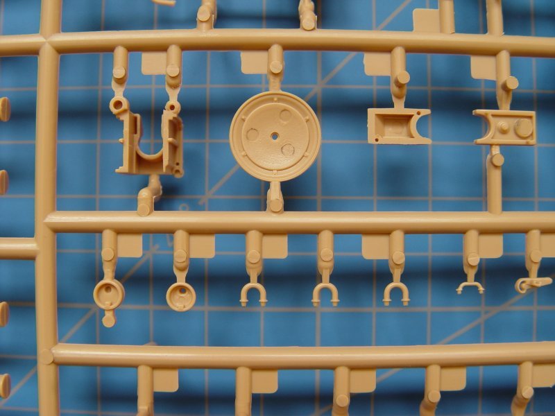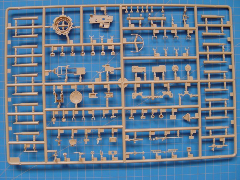 Der Bausatz präsentiert mit 4 Rahmen in A4 Format und 3 in A6 Format. Also eigentlich recht übersichtlich. Der Kunststoff hat eine gelbe Farbe. Die Rahmen sind sauber gegossen. Auf den ersten Blick ist kein Grat zu erkennen. Auswerferstellen konnte ich einige sehen, aber dort wo sie nicht stören.