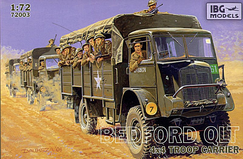 Vorbild: Der britische Bedford QLT wurde speziell für den Truppentransport konstruiert. Ab August 1941 bis Kriegsende wurden 3373 "Trooper" bei Austin hergestellt. Um den langen Aufbau tragen zu können, wurde das Fahrzeug von 19ft 8in, d.h. 6,00m (QLD) auf 21ft (foot) 10in (inch), also 6,66m verlängert, sodass am Fahrzeugheck ein großer Überhang entstand, der jedoch das schwere Beladen im hinteren Teil nicht zuließ. Mit einem weißen Strich und dem Hinweis "LOAD FORWARD OF LINE" wurde die Stelle gut sichtbar markiert, bis wohin die Ladung liegen durfte. Für das Beladen mit Frachtgut konnte die mittlere Sitzbank herausgenommen und die seitlichen Sitzbänke hochgeklappt werden. Die Trooper-Pritsche allein hatte im Innenraum eine Länge von 15ft 10in, also 4,83m und eine Breite von 7ft 1 ½in, d.h. ca. 2,17m.