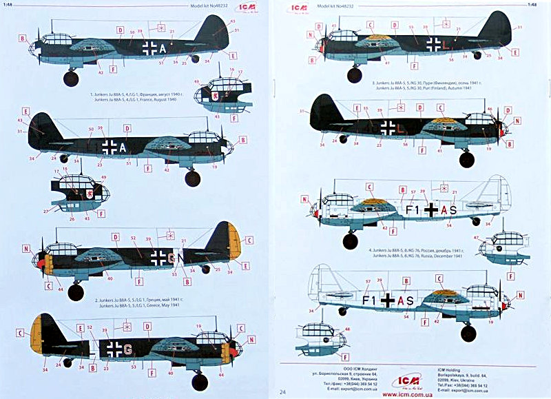 Bis auf die Ju aus Russland sind alle Flugzeuge in der Standarttarnung 70/71/65 gehalten. Die Bauanleitung ist zum ersten Mal auf Hochglanzpapier und die Bemalungsanleitung ist in Farbe.
