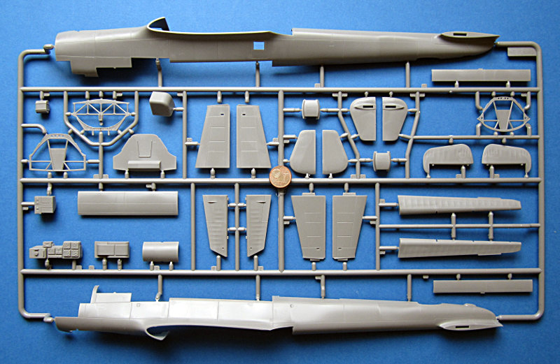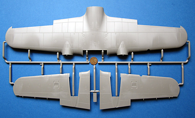 Der Bausatz kommt in einem clever konstruierten, sehr stabilen Karton daher, der trotzdem sehr ansprechend gestaltet ist. Hierfür schon mal ein Lob nach Kiew! Auch nach dem Öffnen des Kartons war ich positiv überrascht. Hier warten sehr gut gestaltete Spritzlinge ohne Grat und mit einer scharfen Gravur auf den Modellbauer. Es gibt ein paar Flussmarken, was bei Bauteilen dieser Größe aber nicht sehr verwundert und unter einer Grundierung und einem Tarnanstrich verschwindet. Die Oberflächengestaltung erreicht nicht ganz die Finesse fernöstlicher Hersteller und ist auch nicht mit Nieten wie die jüngsten Eduardbausätze übersät, aber sie ist wirklich sehr ordentlich und wird die meisten Modellbauer – mich eingeschlossen – zufrieden stellen.