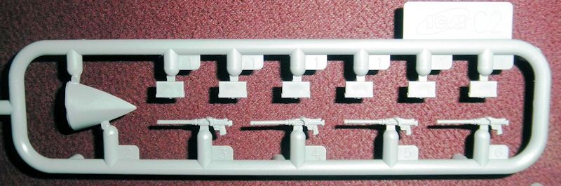 Am zweiten Rahmen befinden sich die Rumpfholmen, Fahrwerksbeine, Räder, Luftschrauben, Sitzen, Steuerknüppel, Bomben und ETC, Cockpitzubehör sowie Bordwaffen. Als Bordwaffen sind die, für die A-1 Variante möglichen MG samt Munitionskästen, bzw. Trommel vorhanden. Diese sind, samt Halterungen sehr gut und detailliert gestaltet.