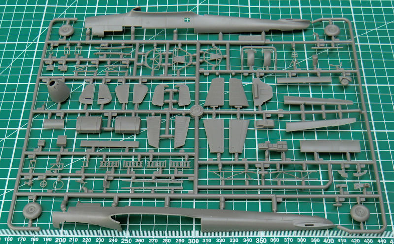 In dem stabilen praktischen Karton befinden sich gut verpackt drei graue Spritzlinge mit 178 Einzelteilen, zwei Klarsichtrahmen mit 13 Teilen, ein Decalbogen und die mehrfarbige Bau- und Bemalungsanleitung. Ein paar Teile sind für andere Versionen bestimmt und wandern in die Restkiste. Die Detaillierung erinnert durchaus an die 48er Do 17/215 und nicht an die alten Do 215-Bausätze in 1/72. Es gibt feine versenkt Strukturen und wunderschöne Details. Die Anordnung der Teile lässt zu mindestens auf eine Do 215 hoffen…