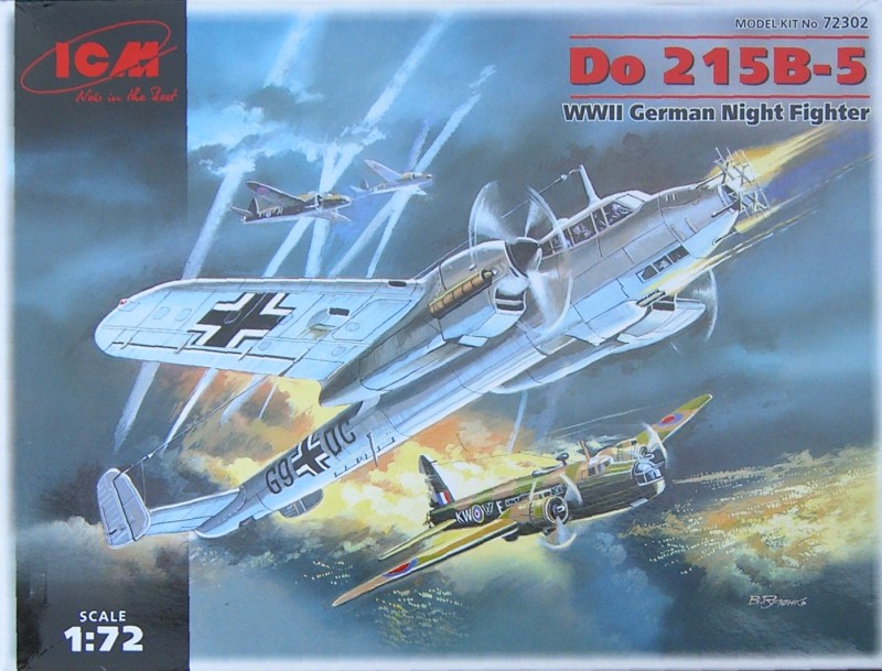Bausatz: Seit einigen Monaten gibt es schon die B-5 Version der Dornier Do 215 im Handel. Sie unterscheidet sich durch den anderen Rumpfbug vom Vorgängerbausatz. Da alle Bauteile bei der B-4 enthalten waren, sind nur der Decalbogen und die Verpackung wirklich neu. Der Rumpfbug ist übrigens als Klarsichtteil vorhanden. Damit ist die Spanner-Anlage einfacher darstellbar.