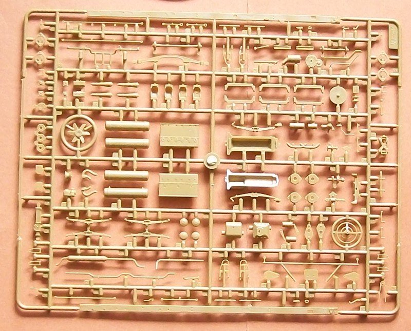 Zum Modell: Der Bausatz besteht aus einer Vielzahl von zum Teil auch sehr filigranen Teilen. Der Bausatz hat einen detaillierten Rahmen mit Motor. Auch das Führerhaus ist innen sehr liebevoll gestaltet worden. Selbst die Winden rechts neben dem Fahrerhaus ist vorhanden. Gott sei Dank fehlt am Heck die Steckdose und der Anschluss für die Druckluftbremse für den Anhänger. Somit habe ich dann doch noch die Gelegenheit zum „Scratschen“.