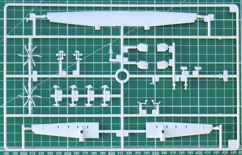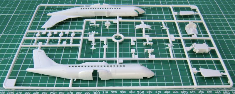 Modell: Der Modellhersteller Italeri bietet hier erstmals ein Airliner Modell im Maßstab 1/144 an. Es wurde bereits vor Jahren angekündigt, dann verschwand es wieder von den Neuheitenlisten um letztlich dieses Jahr wieder aufzutauchen. Ehrlich gesagt hat niemand mehr an dieses Modell geglaubt. Nun ist es da. Es ist ein sauber gegossener Spritzgussbausatz in einer Qualität, wie man es Anfang der 2000er von einem Modellhersteller gewohnt ist. Die Teile sind klassisch aufgeteilt und mit viel Liebe zum Detail mit Antennen, einer ansprechenden Fahrwerksbucht, Triebwerken, etc. ausgestattet. Leider nur mit den 6-Blatt-Propellern der -500er Serie. Das die 4-Blatt-Propeller als Alternative nicht dabei sind, ist schade. Die Kabinenfenster und das Cockpit können mit Klarsichtteilen dargestellt werden, auch Positionslichter sind als Klarteile vorhanden. Leider sind die Tragflächen und das Leitwerk durchgängig zweiteilig, es ergeben sich so recht dicke Hinterkanten. Da ist die Modelltechnik heute eigentlich schon weiter. Auch die Form der Nase kommt meines Erachtens dem Vorbild nur in etwa nahe. Die Details sind allesamt sehr kräftig in der Ausführung. Dafür gibt es ausreichende Gravuren auf Rumpf und Tragflächen. Die Passgenauigkeit ist exzellent, wie eine Passprobe ergab. Allerdings liegen sich die Gravuren am Rumpf nicht zwangsläufig gegenüber. Leider. Ein ansprechend gestalteter Ständer liegt dem Bausatz ebenfalls bei. So wird sicher auch ein schönes Desktopmodell daraus.