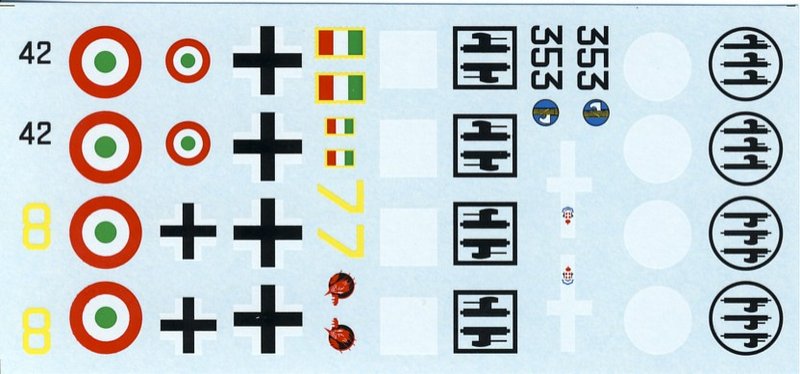 Der recht großzügige Decalbogen enthält nicht nur die Markierungen für drei Einsatzvarianten, sondern auch noch eine Markierung für eine Maschine in deutschen Diensten.
