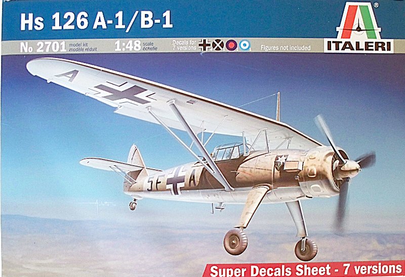 Das Modell der Henschel 126, das Italeri nun im 48er Maßstab anbietet, ist identisch mit dem Bausatz von der ukrainischen Firma ICM, welcher schon seit einiger Zeit erhältlich ist. Auf einer Kartonseite ist auch der Hinweis auf die Lizenzproduktion vermerkt.