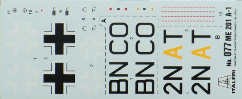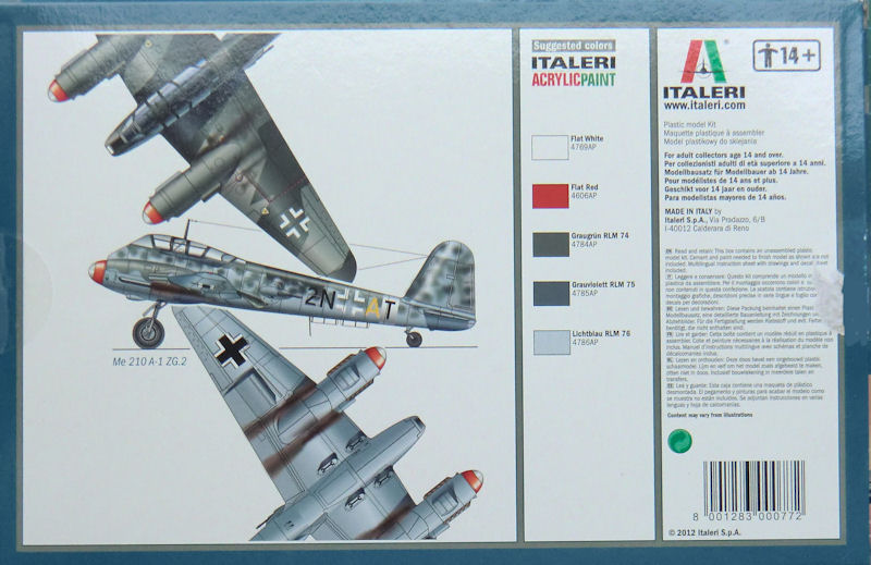 Bausatz: Die Me 210A-1 erschien vor gut zehn Jahren bei Italeri. Im Ursprung wollte man wohl die Bilek-210 herausbringen. Nur dieser Kit genügte nicht den Qualitätsansprüchen dieses italienischen Herstellers. So gibt es in dieser attraktiven aber unpraktischen Schüttbox zwei hellgraue Spritzlinge mit 89 Bauteilen, ein klarer Spritzling mit fünf Teilen, ein Decalbogen und die typische Italeri-Bauanleitung.