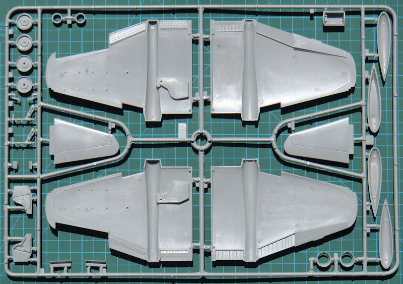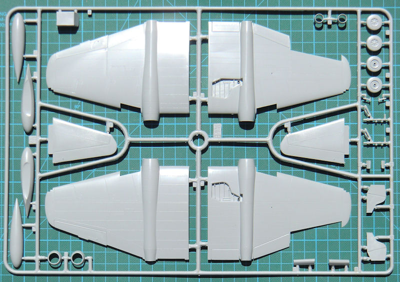 Die Bauteile haben feine erhabene Strukturen. Es gibt aber keinen Graht. Trotz der vielen Bauteile gibt es nicht nur mäßige Details. Das Cockpit entsteht aus elf Teile. Es ist recht rustikal aber formal ist alles vorhanden. Die Instrumentenbretter können bemalt werden. Italeri liefert auch noch Decals dafür. Vor dem Zusammenkleben des Rumpfes ist noch das Gegengewicht einzukleben. Alle spezifischen Teile für die G-Version werden von außen angeklebt. Nur für die Halterungen für die Flächenbewaffnung müssen noch ein paar Bohrungen in der unteren Tragflächenhälfte durchbrochen werden. Warum allerdings der Bombenschacht mit Bomben versehen werden soll, das bleibt ein Geheimnis von Italeri, denn er bleibt zu.