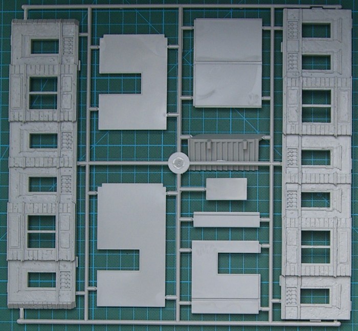 Bausatz: Im Prinzip handelt es sich um ein paar Teile aus dem Basisbausatz, der nur einen unrealistischen Zweigeschosser darstellt. Hiermit liefert Italeri alle Bauteile für ein komplettes Erweiterungsstockwerk. Ein Spritzling ist daher zwei Mal vorhanden. Wie schon gesagt: Ich würde einen Viergeschosser bauen. Ansonsten gilt all das beim Basisbausatz gesagte.