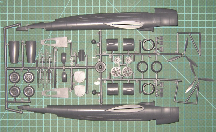 Meine Erwartungen waren nicht hoch. So bin ich auch nicht enttäuscht, dass ich hier einen Bausatz vor mir liegen habe, der in den Grundbauteilen über 25 Jahre alt ist. Offensichtlich wurden die Formen nur geringfügig geändert. Immerhin ist der Spritzling für Henschel-Gleitbombe, Zusatztank und deren Träger neueren Datums (aus der K-2). Positiv ist auch anzumerken, dass Italeri auch wieder zum richtigen Karton zurückgefunden hat. Die "Schüttelbox" war für ein Versenken abgebrochener Kleinteile ideal. Dafür ist der Spritzling mit den Luftschrauben anfällig. Bei keinem mir vorliegenden Bausatz waren alle Teile dran.