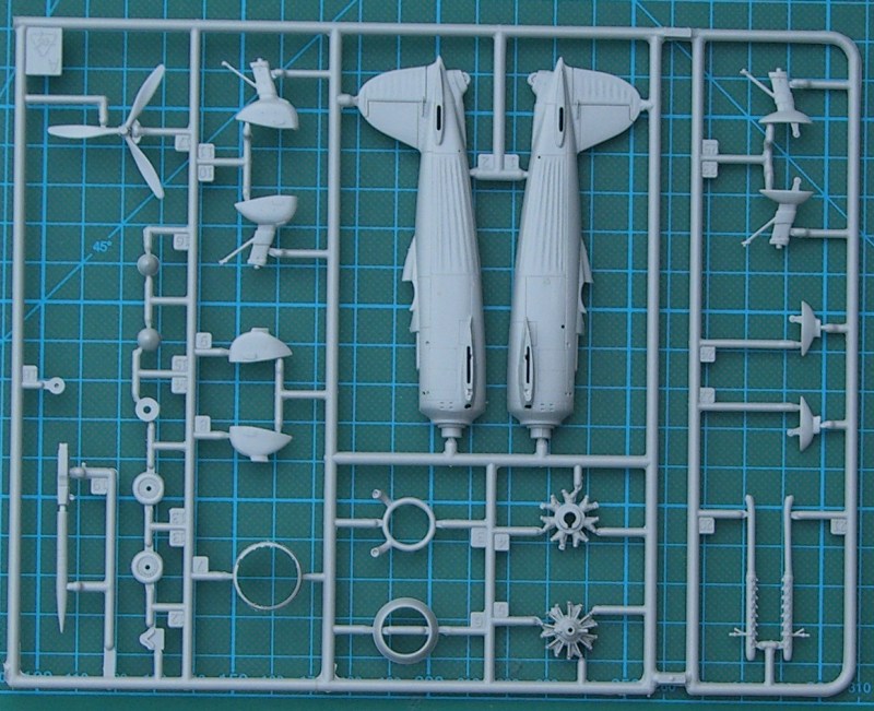 Die zwei Spritzlinge sind gratfrei abgespritzt. Einige Punkte sind etwas überzogen. Das gilt insbesondere für einige Gravuren und die Darstellung der Stoffbespannung. An den Tragflächen sollten die erhabenen Rippen vor der Montage ein wenig abgeschliffen werden.