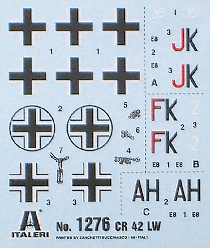 Bausatz: Italeri hatte die CR. 42 nach langer Wartezeit im Vorjahr in 1/72 herausgebracht. Jetzt wurde vor einiger Zeit die deutsche Version nachgeschoben. Dazu wurden in der Form vorbereitete Kanäle freigemacht und andere Verschlossen. So sind die spezifischen Teile vorhanden.