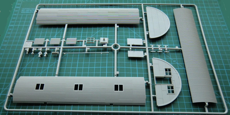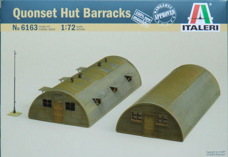 Bausatz: Italeri hat für Dioramenfreunde und Wargamer des 1/72er Maßstabs jetzt auch eine 72-fach-verkleinerte US-Baracke herausgebracht. In dem stabilen Stülpkarton befinden sich gut verpackt zwei hellgraue Spritzlinge mit 50 Teilen, ein paar Folien für die Fenster sowie eine Bauanleitung.