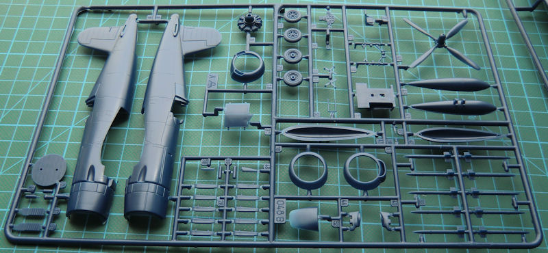 Die Bauteile besitzen feine versenkte Strukturen. Einige Bauteile sind etwas simpel. Das gilt insbesondere für das Cockpit und den Motor. Hier erkennt man schon, dass dieser Kit schon ein paar Jahre auf dem Buckel hat.