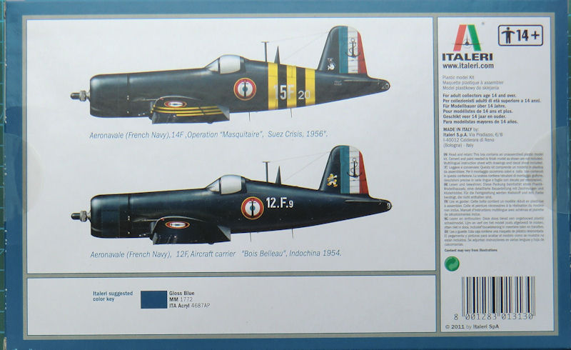Bausatz: Der F4U-7 Corsair-Kit erschien erstmals Mitte der 90er Jahre bei Italeri. Nun kam er mit neuen Bemalungsvarianten versehen erneut auf dem Markt. Es ist derzeit der einzige Kit einer F4U-7 in 1/72 auf dem Markt.