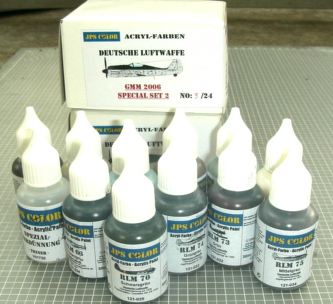 Bezugsquellen und Preise für die Farben finden sich sämtlichst auf jpsmodell.de. Die Preise werden auf den Milliliter umgerechnet, vermutlich deutlich günstiger sein als bei Produkten aus Übersee.
