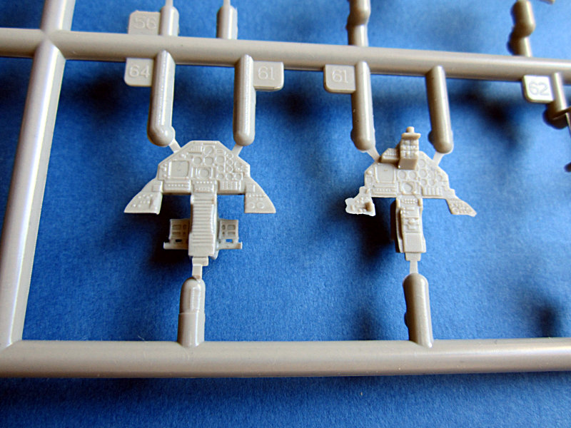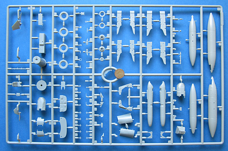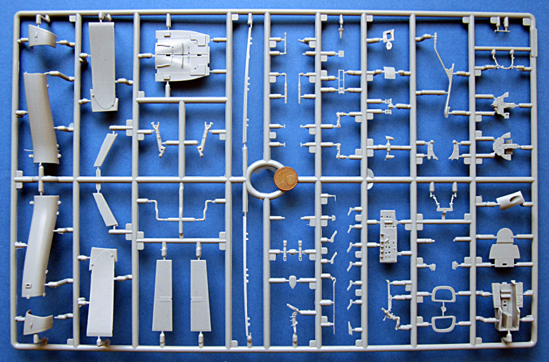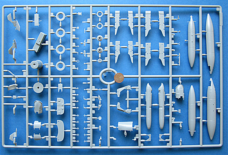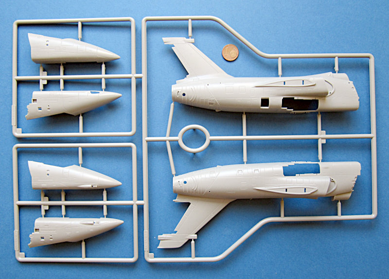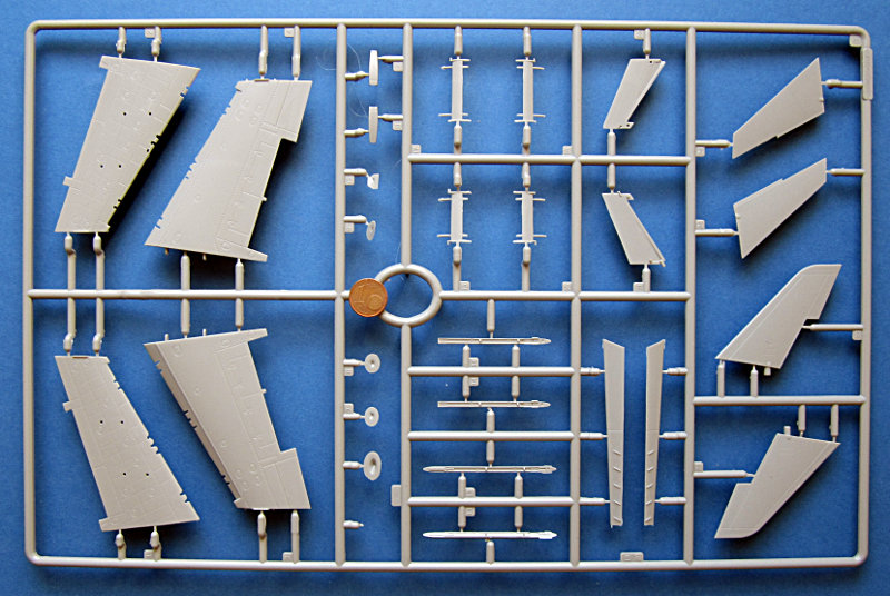 Bei Glow2b ist es inzwischen schon fast eine Tradition, zur Messe in Nürnberg den einen oder anderen aktuellen Testshot einer der importierten Marken einfliegen zu lassen. In diesem Jahr konnte man Spritzlinge der F-16XL und die hier vorgestellten Gießrahmen des AMX bewundern. Letztere sind in einem recht finalen Stadium und lassen Schlüsse auf das Modell zu. Insgesamt ist dies ein typisches Kinetic Produkt, die Oberfläche ist mattiert und die Gravuren ein wenig unscharf. Ansonsten geizt der Hersteller jedoch nicht mit Details. Mir ist nicht klar, ob Ein- und Zweisitzer in einer Box kommen (bei Kinetic gibt's dazu auch noch nichts zu sehen). Ein Spritzling war doppelt dabei, aber wahrscheinlich nur, weil ein paar Teile abgefallen sind.
