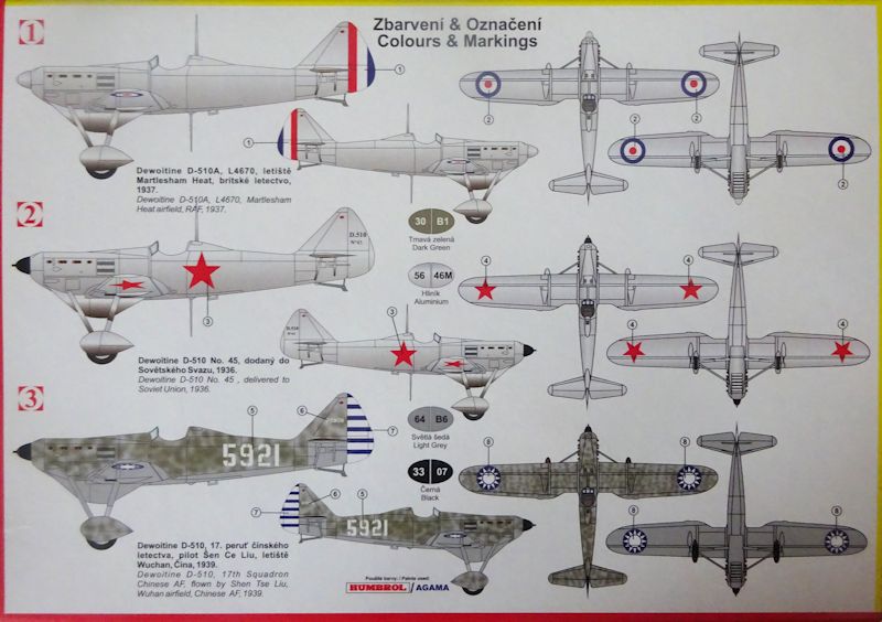 Bauanleitung/ Bemalung: Die Anleitung führt in neun Schritten zum Ziel. Sie enthält Farbangaben in Humbrol und Agama. Eine Bemalungsanleitung befindet sich auf der Kartonrückseite. Die mit etwas Rand sauber gedruckten Abziehbilder lassen den Bau von einer britischen, einer sowjetischen und einer chinesischen Maschine zu.