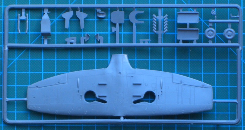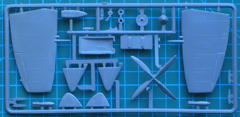 Da für diese Version einige Konversionsteile notwendig sind, wandern einige Bauteile in die Restekiste. Schnell erkennt man, dass der Grundbausatz schon gut 25 Jahre hinter sich hat. Die Abspritzung ist aber noch gut und es gibt kaum Grat. Viele Modellbauer stören sich vermutlich an den erhabenen Strukturen. Das sehe ich nicht schlimm! Das Cockpit ist recht einfach detailliert. Wer Lust hat, der kann sich hier austoben. Durch die recht dicke Kanzel ist allerdings hinterher davon kaum mehr was zu sehen.