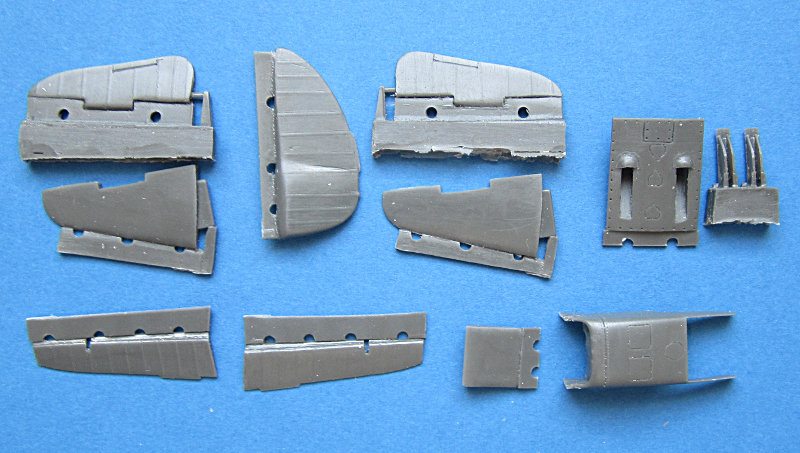 Das dunkelgraue Material ist recht hart und stabil. Die Darstellung der Stoff-bespannten Flächen ist hinreichend subtil. Querruder und Höhenleitwerk werden einfach ersetzt, Das Seitenruder muss abgesägt werden, um das Ersatzteil zu verwenden. Etwas schwieriger wird es beim Ersatz des Panels vor dem Kühler, dafür hat wohl jeder seine bevorzugte Methode. Ich werde wahrscheinlich versuchen, den Flügel mit einer PE-Säge an den Gravurlinien zu durchtrennen.
