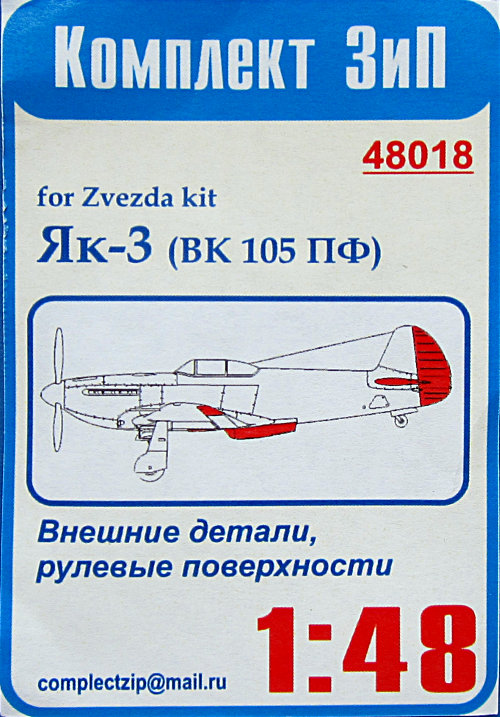 Der Bausatz von Zvezda (First Look) ist grundsätzlich sehr gut. Allerdings hat er viele Merkmale mit dem 1/72er Snap-Kit gemein und somit etwas vereinfacht. Dieser Satz verbessert die Leitwerksflächen und den Bauchkühler der Jak-3. Auch ein Flügelpanel vor dem Einlauf wird ersetzt. Leider gibt es keine Bauanleitung, so dass man hier etwas recherchieren muss, um die 3 Teile korrekt zu verbauen.