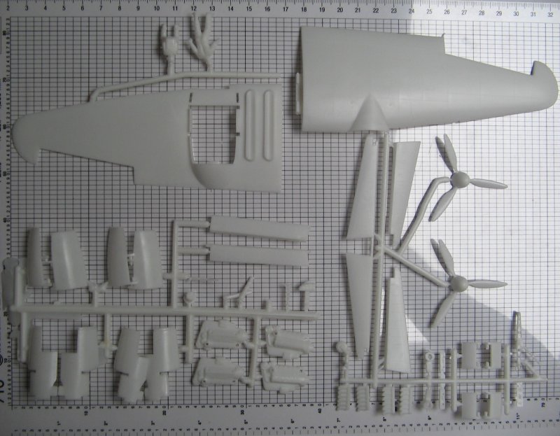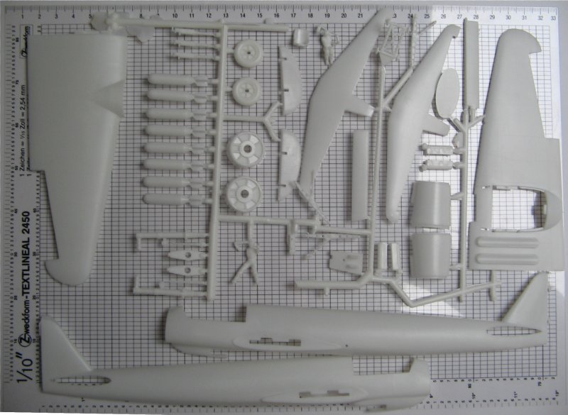 Wie für alle Lindberg-Bausätze typisch, findet man, wenn man die große, auf einer Seite aufklappbare Schachtel öffnet, keine üblichen Gussrahmen, sondern nur Teilbereiche dieser. Dies ist mit Sicherheit der Stabilität nicht gerade zuträglich, hilft allerdings den Plastik-Abfall zu minimieren. Die weißen Teile sind recht ordentlich gegossen und verfügen über so gut wie keine Einsinkstellen und erstaunlich wenig Gussgrat beziehungsweise „Fischhaut“ an den Teilerändern. Die Aufteilung ist recht konventionell und bietet somit auch Newcomern keinerlei Schwierigkeiten zumal der Zusammenbau mithilfe der übersichtlichen in vierzehn Schritte gegliederten Bauanleitung bestens dokumentiert wird. Die Passgenauigkeit geht vollkommen in Ordnung.