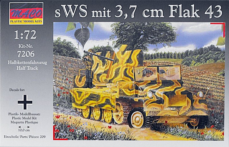 Vorbild: Der schwere Wehrmachtschlepper (sWS) entstand ab 1942 bei Büssing-NAG. Nach der Erprobung ging der sWS auch bei Ringhoffer-Tatra in Kollin in die Serie. Die erhoffte Großserie kam nicht so richtig voran. Immerhin wurden bis 1945 ca. 1000 Exemplare fertiggestellt. Meist hatten sie einen Pritschenaufbau. Es wurden auch einige Fahrzeuge umgerüstet. Sie erhielten eine zusätzlichere Panzerung und die 3,7cm-Flak 43.