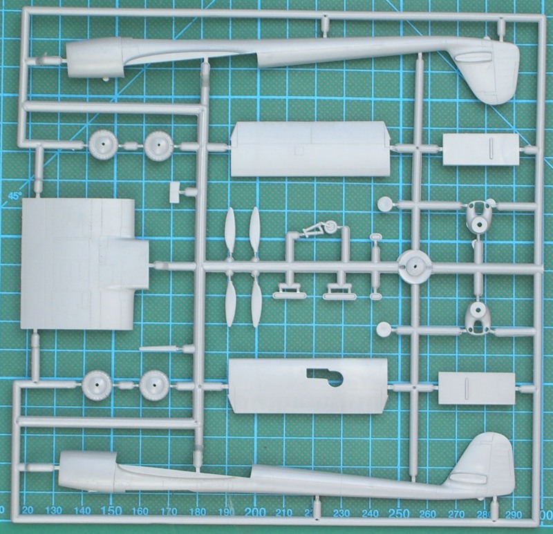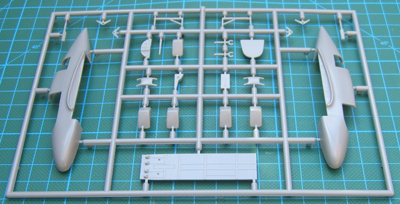 Die drei Spritzgussrahmen enthalten sehr schön detaillierte Teile und einen Rahmen Klarsichtteile. Nicht immer sind diese ohne Grat.