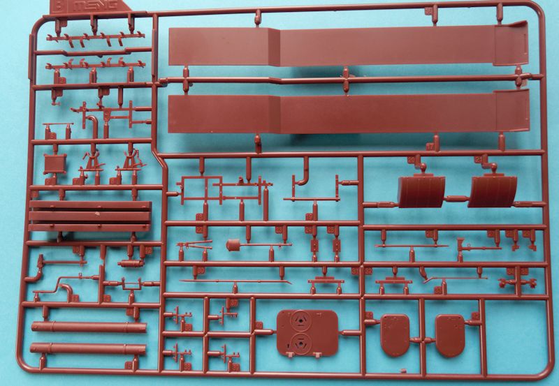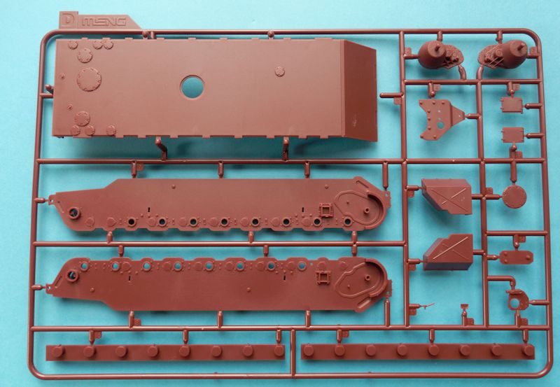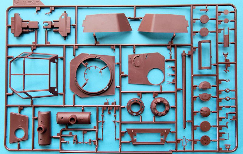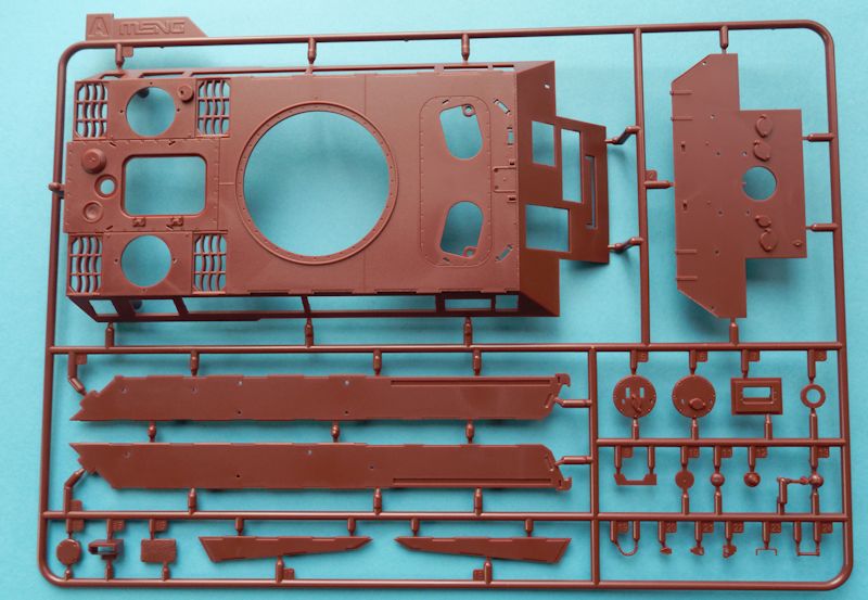 Meng hat bei diesem Bausatz einen neuen Weg der Montage beschritten in dem die Wanne nicht, wie gewöhnlich, als komplettes Teil gegossen wurde, sondern in einzelnen Teilen beiliegt. Der Aufbau besteht aus Unterboden, Seitenteile, Heck- und Frontplatte. Der Turm liegt nur als Gerüst bei und wird mit separaten Platten vervollständigt. Diese Version ist zwar formentechnisch für den Hersteller einfacher in der Fertigung, jedoch für den Modellbauer eine Herausforderung die einzelnen Plattenteile spalt- und verzugsfrei zu montieren.