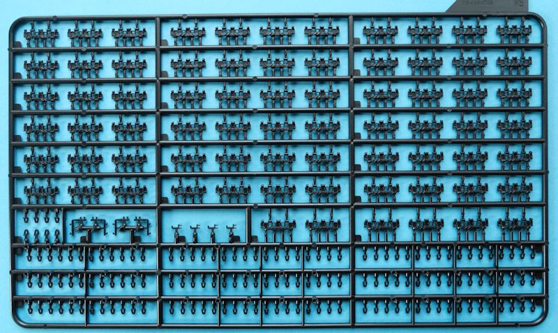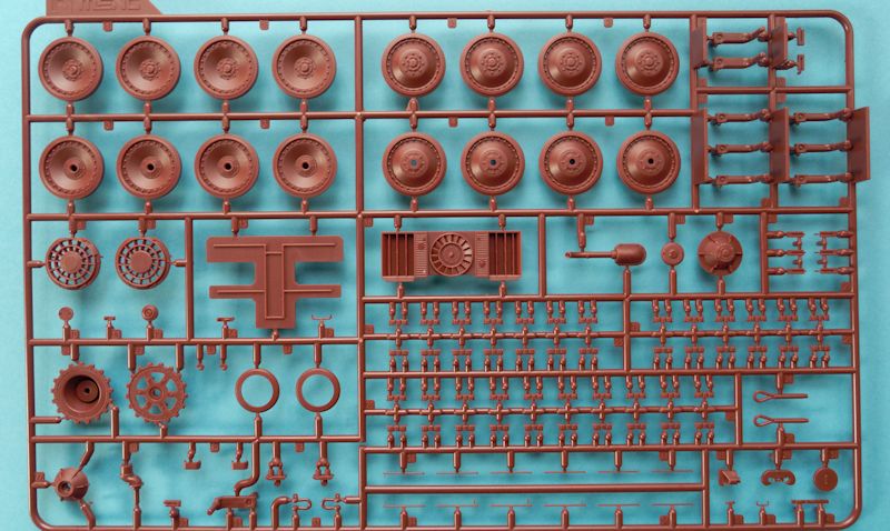 Die Qualität der einzelnen Bauteile ist hervorragend detailliert und sehr fein strukturiert. Bei den verschiedenen Optionsteilen, wie z.B. die Einzelrohr- bzw. dem linken Dreierauspuff, muss man aufpassen um nicht den Überblick zu verlieren. Die feinen Gravuren der Teile sind hier wirklich eine Augenweide. So besitzen die Benzinkanister eine Beschriftung für die man fast eine Lupe benötigt, um z.B. das Produktionsjahr lesen zu können. Auch die beiden MG besitzen allerfeinste Gravuren und auch der Hülsensack hat einen schönen Faltenwurf. Die Panzerplatten verfügen über eine schöne Gussstruktur. Die Vorgelege sowie die Maserung der Holzteile scheint jedoch etwas grob zu sein. Ob die Kommandantenkuppel auch solche grobe Struktur hatte, möchte ich jedoch bezweifeln. Der Bausatz enthält in der Erstauflage zwar zusätzlich ein Aluminiumrohr, jedoch kann sich das einteilige Plastikrohr durchaus sehen lassen.