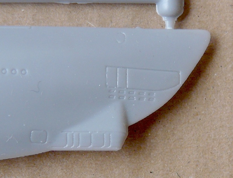 Die Plastikteile entsprechen in der Qualität des Gusses und der Scharfkantigkeit der Gravuren nicht unbedingt dem heutigen Standard, aber wir haben es bei Mikro Mir ja auch nicht mit einer der High-Tech Firmen aus Asien oder einem der anderen großen Hersteller zu tun. Besonders die Hinterkanten der Ruderanlage leidet unter dem Produktionsmängeln. Die Hinterkante des Ruders- bzw. der Flosse(n) sind bei dem mir vorliegenden Bausatz leicht zerfranst, so dass hier evtl. mit Plastiksheet nachgearbeitet werden muss.