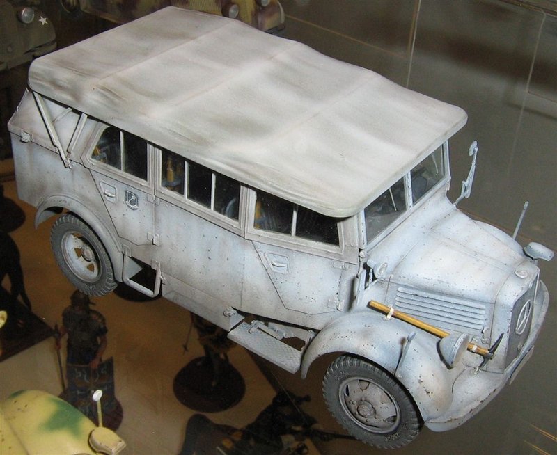 Zum Original: Die Mercedes-Benz Typen 1500 S und A wurden von 1941 bis 1944 hergestellt. Angetrieben werden diese von einem Sechszylindermotor mit 2,6 l Hubraum und 60 PS Leistung. Der 1500 A hat gegenüber der S-Variante eine angetriebene Vorderachse, ein Verteilergetriebe mit zusätzlicher Geländeuntersetzung, breitere Reifen und größere Bodenfreiheit.