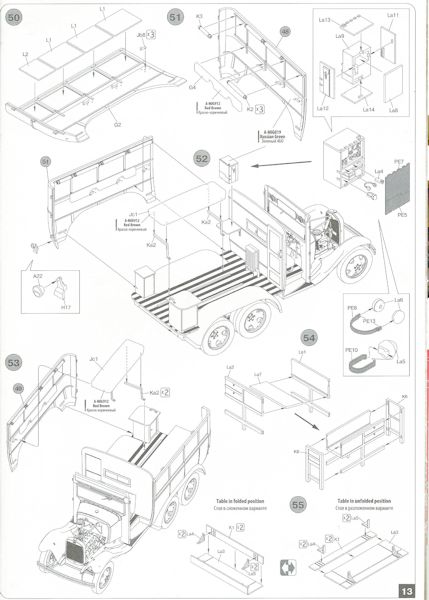 Bausatz: Der Bausatz basiert auf dem 2012 erschienenen GAZ-AAA Cargo Truck. Von diesem erstklassig detailliertem Fahrzeug sind in den letzten vier Jahren einige Varianten erschienen. Wie soll es auch anders sein, mit dem Stabsbus halten wir auch hier ein super Produkt in den Händen. Der Bausatz besteht aus gesamt 421 graufarbigen Plastikbauteilen, einem Spritzling mit Klarsichtteilen, einem kleinen Ätzteilbogen und dem Abziehbilderbogen.