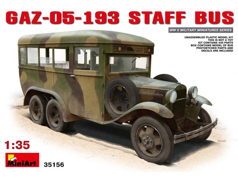 Vorbild: Der GAZ-AAA ist ein leichter dreiachsiger Lkw, der vom Autowerk Gorki in den Jahren 1934-1943 produziert wurde und unterhalb des ZIS-6 angesiedelt war. Unter der Bezeichnung GAZ-05-193 wurde auf einigen wenigen Fahrgestellen des GAZ-AAA eine geschlossene Buskarosserie gesetzt. Es handelte sich nicht um einen Omnibus im eigentlichen Sinne, da nur neun Sitzplätze vorhanden waren. Vielmehr wurde das Fahrzeug zu Spezialzwecken genutzt.