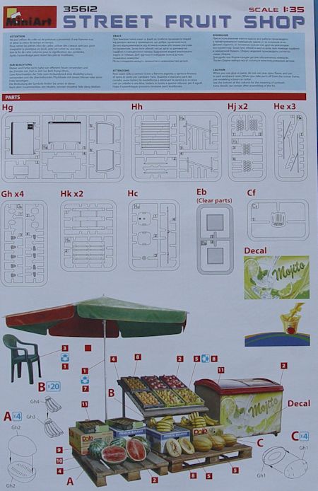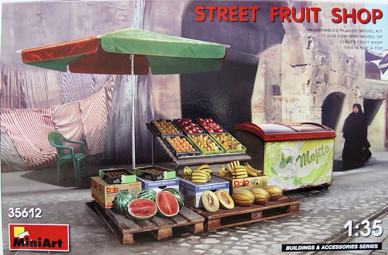 Miniart hat seine Palette an Zubehör um einen modernen Marktstand mit Obst und Früchten erweitert.