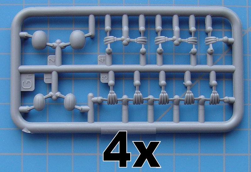 Der Faltkarton ist wohlgefüllt mit 14 kleinen A6- und A7-Spritzrahmen. Die dargestellten Euro-Palette sind gut gelungen.