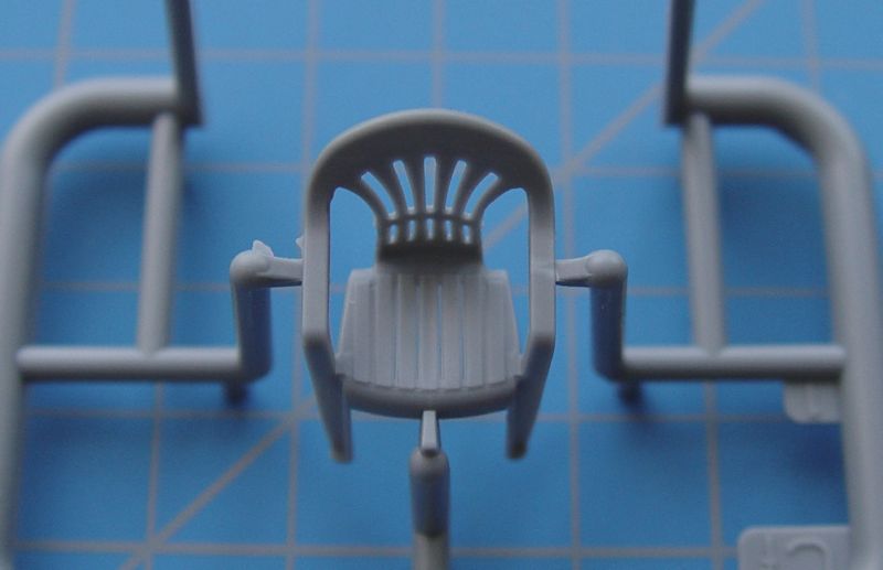 Der typische weiße Gartenstuhl ist hervorragend gemacht. Wer kenn ihn nicht? Er ist aus einem Stück gegossen, große Spritzkunst.