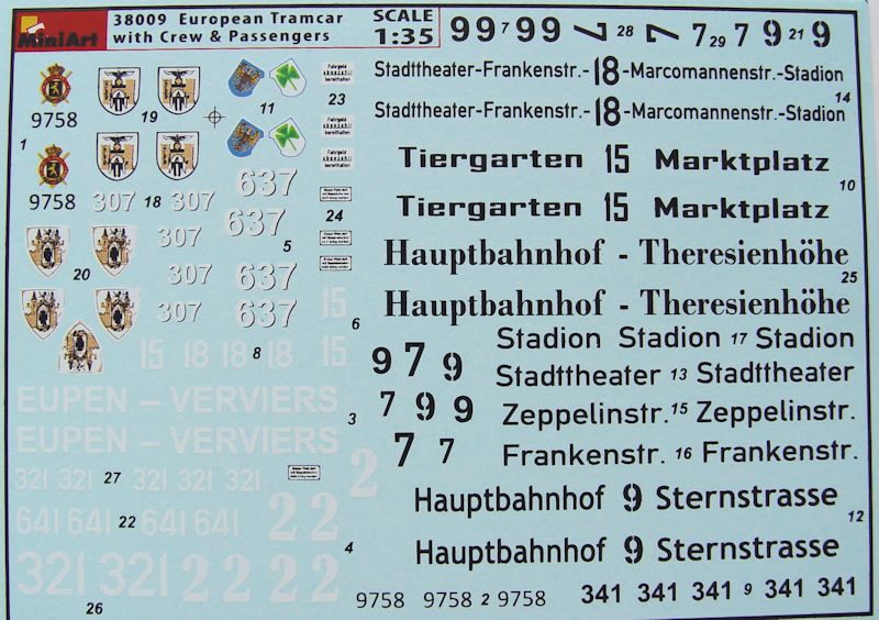 Bemalung: Es sind sechs sehr farbenfrohe Bemalungsvorschläge in Hochglanzfarbe abgedruckt. Der Bauanleitung liegen noch zusätzlich Werbebanner und Plakate bei. Der Decalbogen enthält ebenfalls viele Werbebanner. Alles sehr gut gelungen.