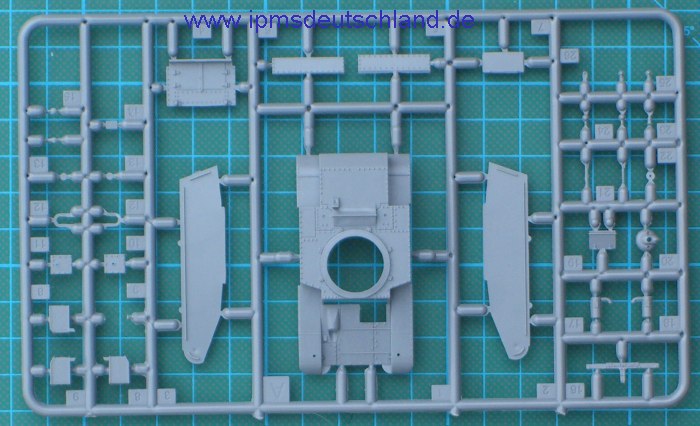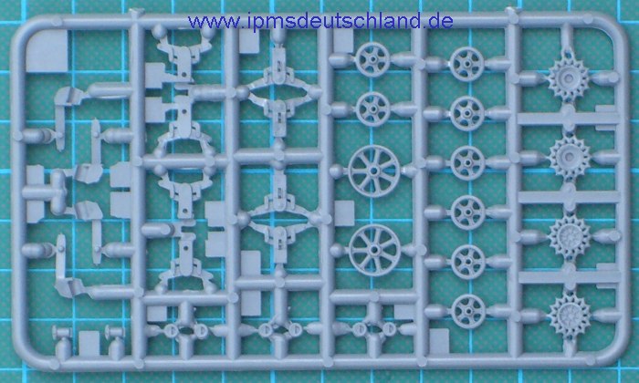 Bausatz: Das hier vorgestellte Modell entstammt einer limitierten Auflage von WMC, die offiziell nur für den britischen Markt gedacht ist. Der Bausatz enthält zusätzlich eine Resinplakette, die das Einheitsabzeichen der 8th Kings Royal Irish Hussars trägt. Die Bauanleitung beschäftigt sich über drei eng beschriebenen A4 Seiten mit der Einheit und des Einsatzes dieser Panzer. Alle Baustufen in der Bauanleitung entstammen dem Computer und sind dann mit zusätzlichen Hinweisen versehen. Die Spritzgussteile sind vorbildgerecht mit massiven Nieten versehen. Das Fahrwerk ist schön aufgeteilt, so dass es auch bei Dioramen entsprechend dem Gelände angepasst werden kann. Die Abspritzung der Bauteile ist gut.