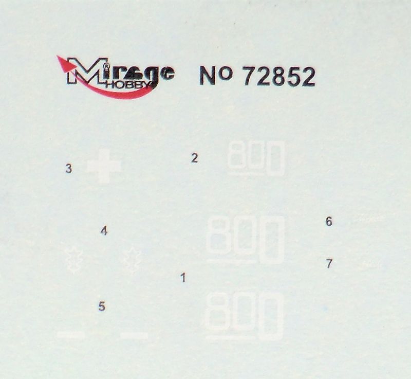 Der kleine Decalbogen ist tadellos auf hellblauem Trägerpapier gedruckt. Die Farbangaben sind für die Systeme von Vallejo und Humbrol.