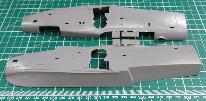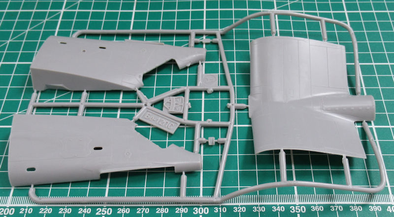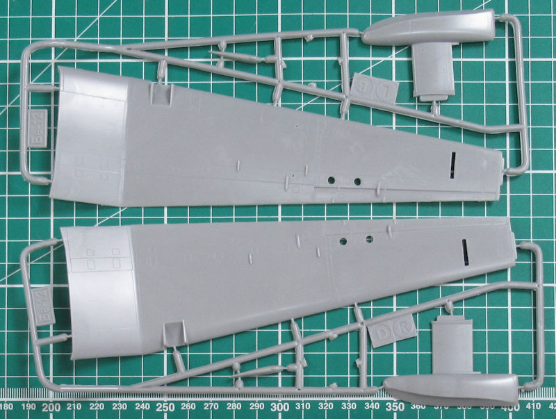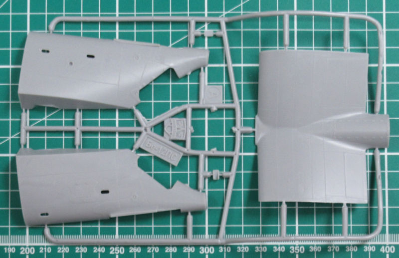 Schnell erkennt der Betrachter dass wir es hier nicht mit einem Anfängerbausatz zu tun haben. Der Rumpf ist mehrfach geteilt und damit können auch andere Versionen realisiert werden. Es gibt aber feine versenkte Strukturen und schöne Details.