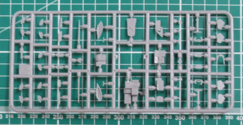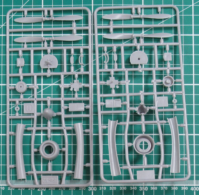 In dem attraktiven praktischen Stülpkarton befinden sich gut verpackt 21 hellgraue Spritzgussrahmen oder Großbauteile mit 210 Teilen, drei klare Spritzgussrahmen mit zwölf 31 Teilen, drei Gummireifen, ein kleiner Fotoätzteilbogen mit zwölf Teilen, Vinylmasken, ein Decalbogen und die mehrfarbige Bau- und Bemalungsanleitung.