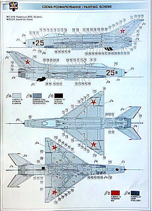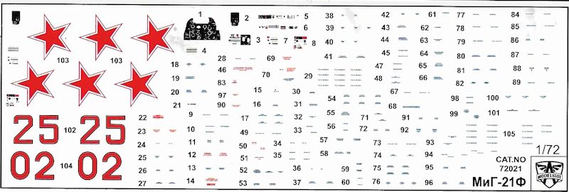 Vorbild: Die Arbeiten an der MiG-21 begannen 1953 und führten 1958 zum Prototyp E-6/3. Dieser wurde 1959 der Ausgangspunkt für die Serienausführung MiG-21F (Erzeugnis 72). Diese unterscheidet sich von der späteren F-13 durch ein kleineres Seitenleitwerk (3,8 m²) und zwei Kanonen. Auf dem Dach befanden sich zwei Wülste die zum Schleudersitzsystem KK-2 gehörten. An den beiden Flächenträgern können Bomben und ungelenkte Raketen mitgeführt werden. In Gorki entstanden 89 Flugzeuge. Danach wurde auf die MiG-21 F-13 umgestellt.