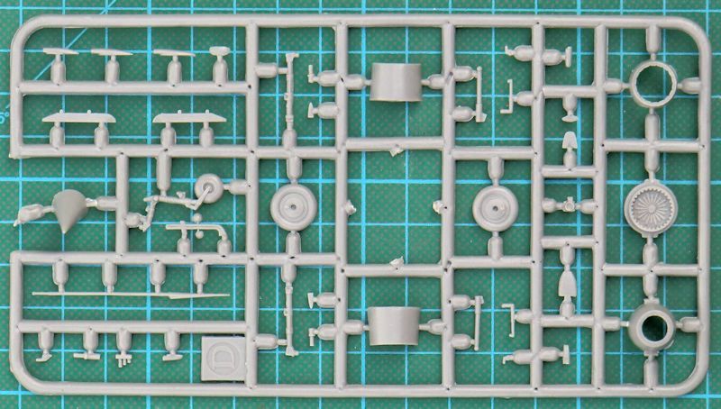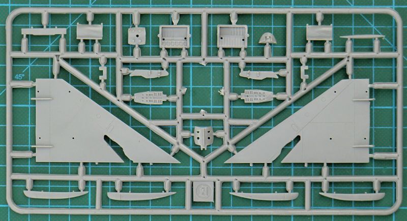 Der Bau beginnt hier mit dem Schleudersitz. Dieser entsteht aus acht Teilen. Nur die Gurte müssen noch ergänzt werden. Das Instrumentenbrett hat feine Strukturen und kann ordentlich bemalt werden. Die Schubdüse entsteht aus vier Teilen. Dadurch hat sie eine vorbildgetreue Tiefe. Der im Original verstellbare Kegel am Lufteinlauf ist sehr spitz und in ihm sollte man die 15 Gramm Gegengewicht verstecken. Das Seitenleitwerk besteht aus einem Stück und auch die Deltaflügel sind so aufgebaut, dass diese scharfe Hinterkanten haben.